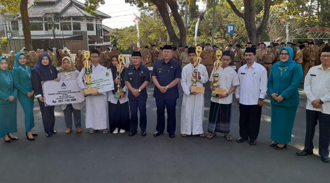 (Senin, 21/10) Bupati Kuningan H. Acep Purnama SH.,MH. didampingi Setda Kabupaten Kuningan Dr. H. Dian Rachmat Yanuar, M.Si. dan Kasi Pontren Kemenag Kab. Kuningan Bapak Nurdin pada akhir pelaksanaan Apel Pagi di halaman Pendopo Pemkab Kuningan menyerahkan piala dan hadiah kepada 4 (empat) Kafilah Musabaqoh Qira’atil Kutub (MQK) yang telah berhasil meraih prestasi dalam mengikuti lomba MQK mewakili Kabupaten Kuningan di tingkat Provinsi Jawa Barat yang dilaksanakan pada tanggal 15 s.d 18 Oktober 2019 bertempat di Komplek PP Cipasung Kab. Tasikmalaya.